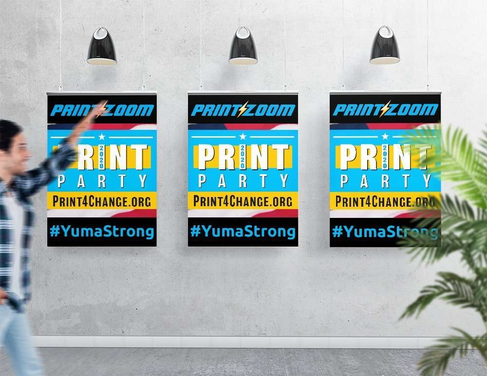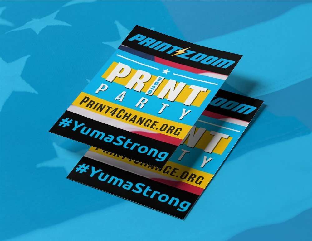 2020 is an energetically charged election year and Imaginary Friends Design Studios (IF) and Print Zoom have teamed up for The Print Party Experiment. The Print Party is an imaginary political party that is campaigning for it’s selected candidate. This candidate wants to shine above all others in the upcoming election. How can your Imaginary Friends help this candidate get their name out there and get those votes? IF has come up with a plan for advertising and marketing 4 different areas: outdoor collateral, digital, swag and collateral marketing tools. You don’t have to be a political candidate to benefit from executing any of these free marketing strategies. Any business can improve their reach and visibility by creating a plan and executing these tools.